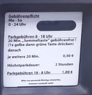 Wenn man nun normal denkt, dann vermutet man deutliche Hinweise auf Abend- bzw. Nachtparkgebühren, so wie dies eben "normal" ist. Es soll hier nicht die Beahuptung aufgestellt werden, dass dies überall so ist, aber ger gesdunde Menschenverstand erwartet hier entsprechende Kennzeichnungen. |