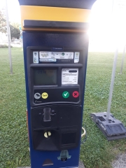 Wohl gemerkt: Dunkler Parkplatz, keine Beleuchtung, keine Hinweisschilder - lediglich ganz klein, ganz winzig ist auf dem Automaten vermerkt, dass durchgängig jeden Tag Gebühren zu entrichten sind (außer Sonntags). |
